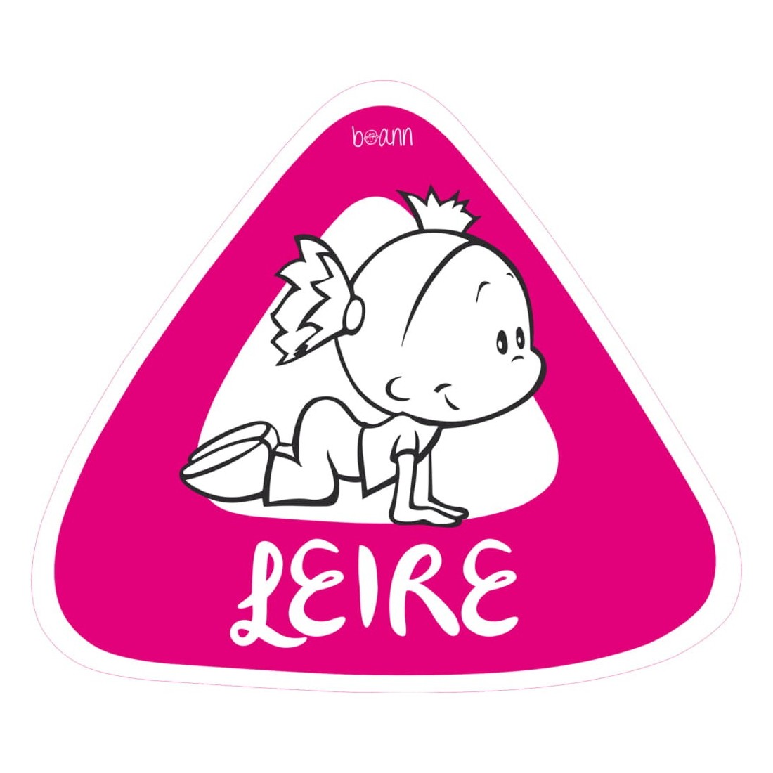 Adesivo Baby on Board per l'INTERNO dell'auto con il disegno di una Bambina e il testo desiderato, disponibile nei colori Rosa, Blu e Rosso.