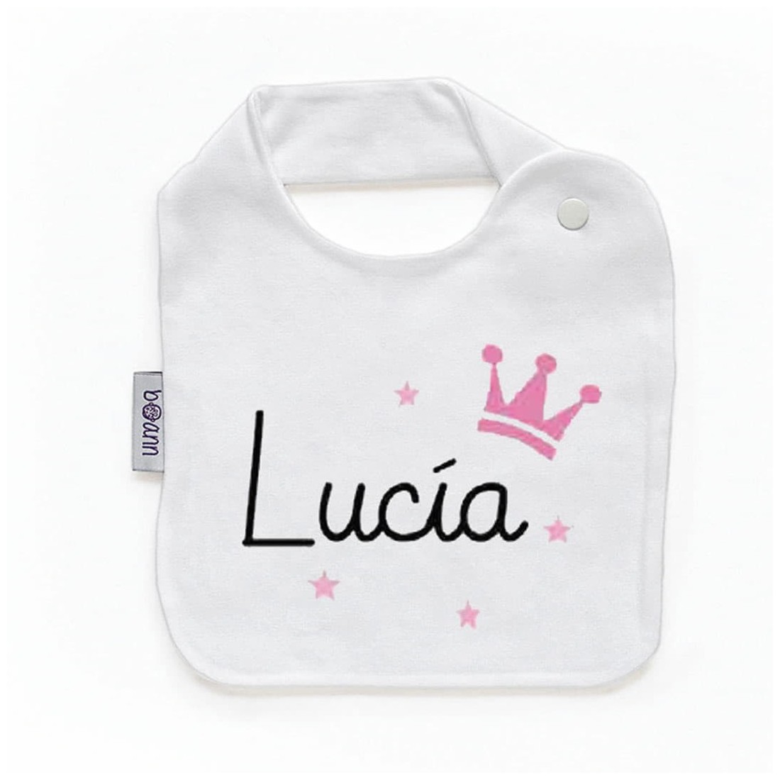 Bavaglino Corona Rosa Con Nome Personalizzato