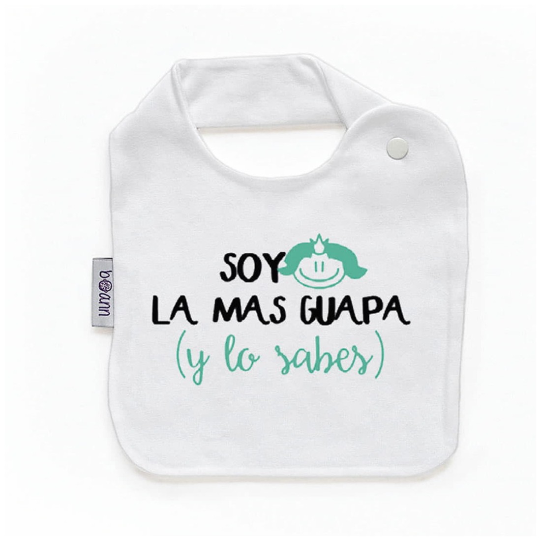 Questo bavaglino in cotone è un'ottima idea per un regalo originale per la quantità di frasi divertenti che proponiamo, anche se puoi sempre personalizzarlo a tuo piacimento con un'altra frase o il nome del bambino.
