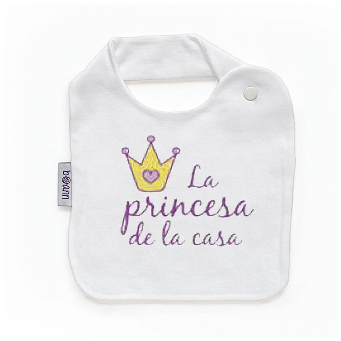Bavaglino personalizzato con la frase "la principessa di casa", realizzato con 3 morbidi strati di cotone.