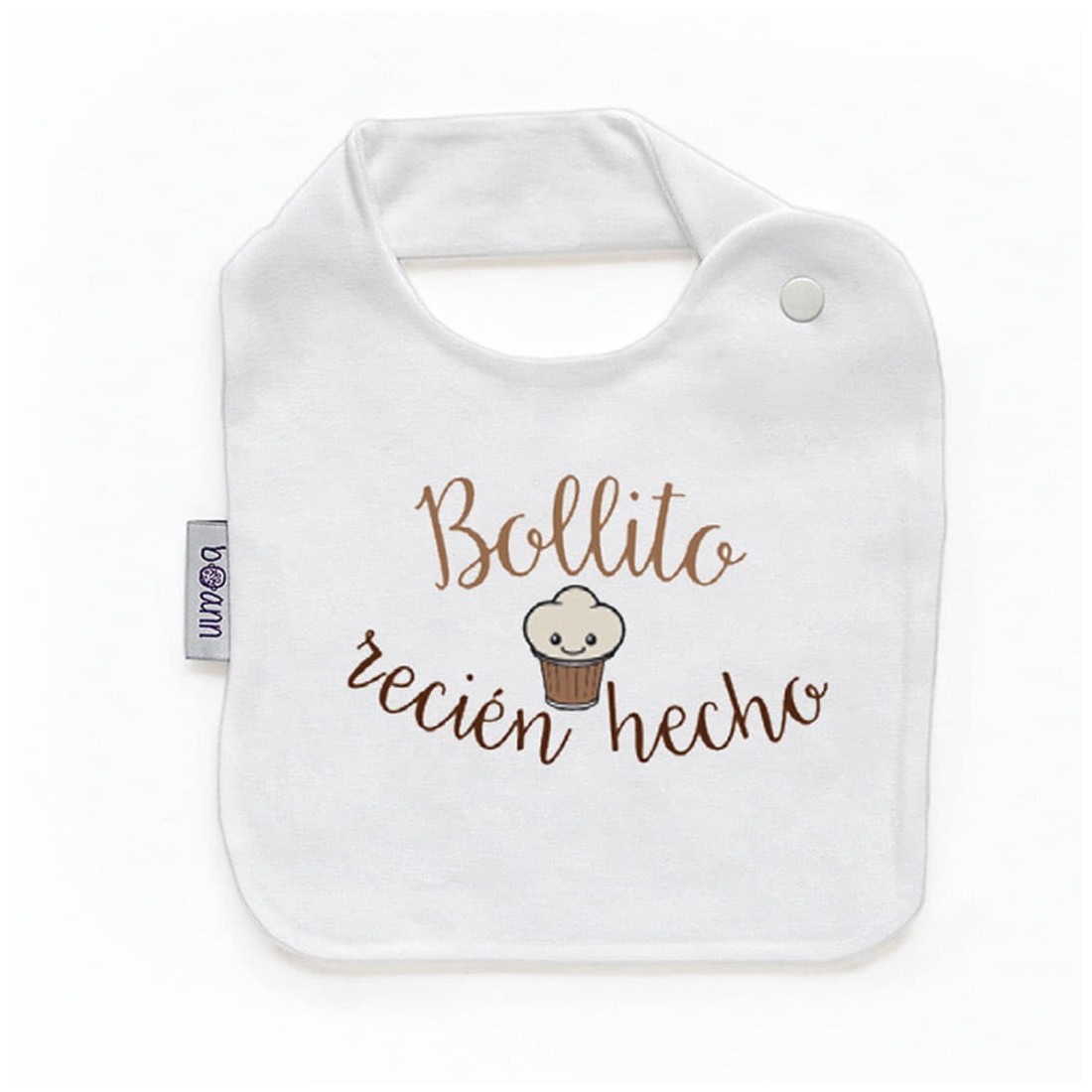 Bavaglino personalizzato con la scritta "Panino appena fatto", realizzato con 3 morbidi strati di cotone.