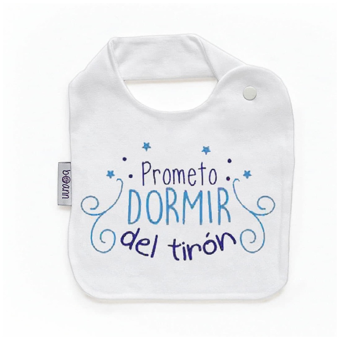 Bavaglino personalizzato con la frase "Prometto di DORMIRE subito", realizzato con 3 strati di morbido cotone.