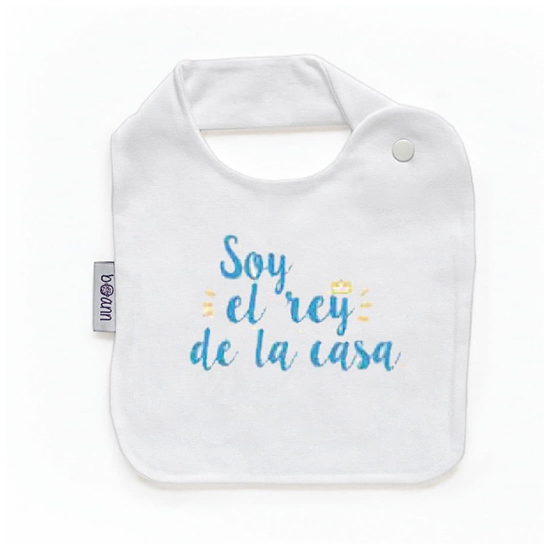 Bavaglino personalizzato con la frase "Sono il re della casa", realizzato con 3 morbidi strati di cotone.