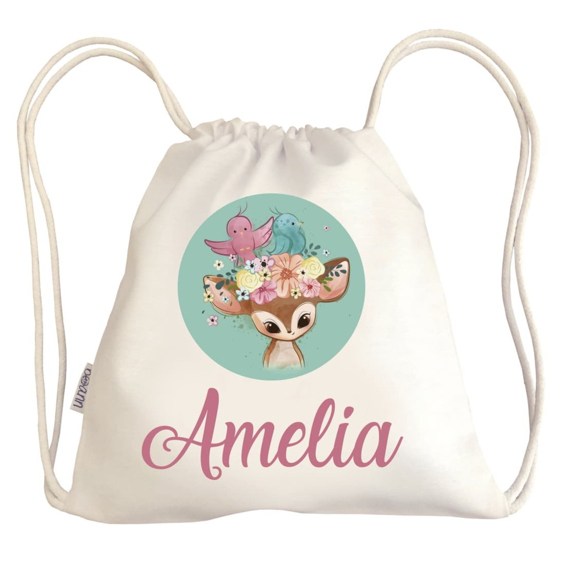 Spazzolino per bambini in bambù personalizzato con un nome, pensato per l'igiene del bambino. Disponibile con setole blu o rosa.