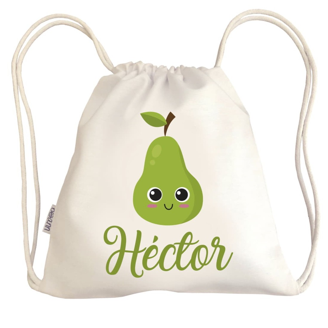 Borsa personalizzata con manici con il nome che più ti piace e un disegno di Pera, disponibile in bianco e con una dimensione di 28x30cm.