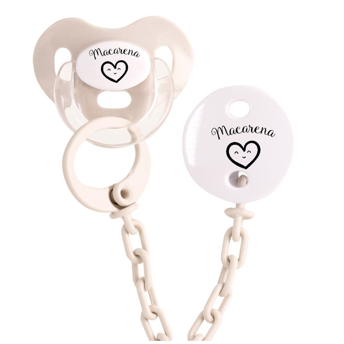 Set Ciuccio E Catena Cuore Con Nome Personalizzato