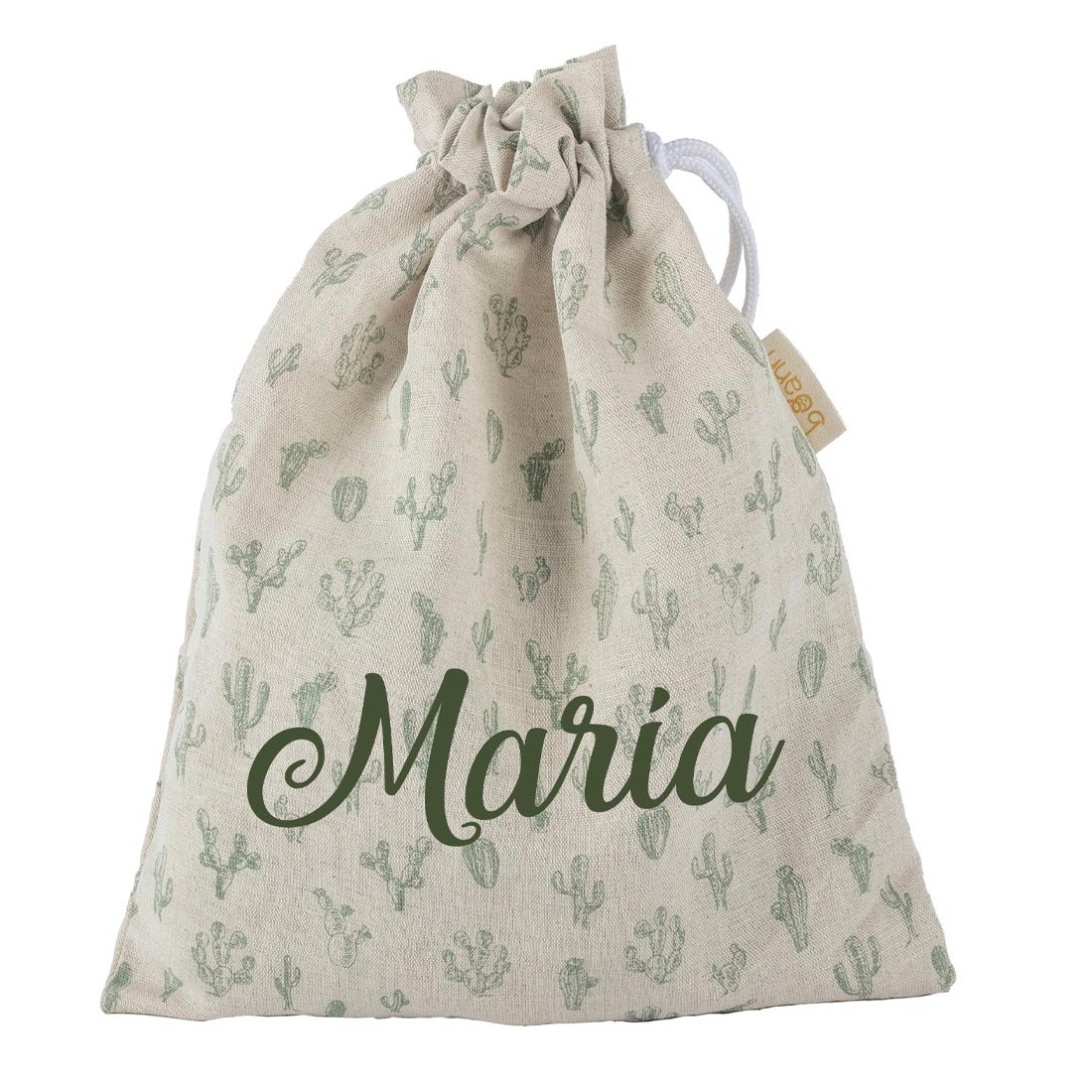 Mini Bag personalizzata con il nome che più ti piace e un stampa di cactus, disponibile con una dimensione di 27,5x21,5cm.