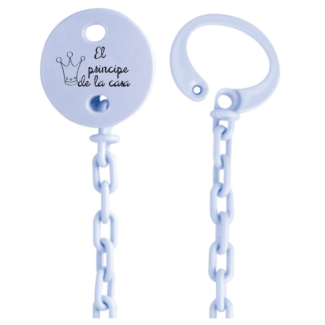 Catena porta ciuccio personalizzata con la frase "Il principe di casa", si adatta a qualsiasi ciuccio con anello.