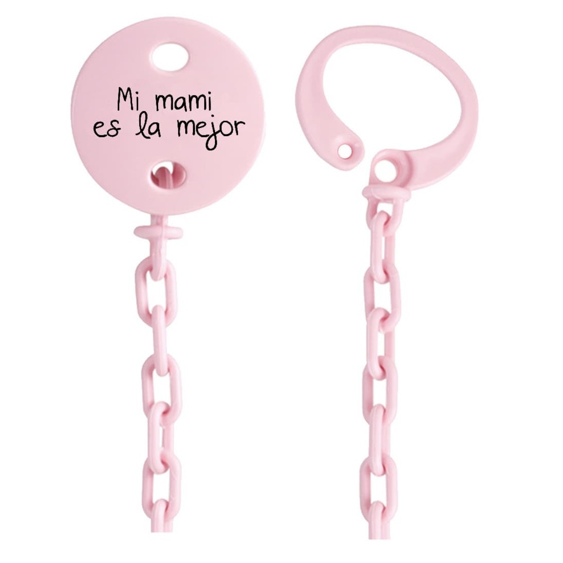 Catena porta ciuccio personalizzata con la frase "Mia mamma è la migliore", si adatta a qualsiasi ciuccio con anello.
