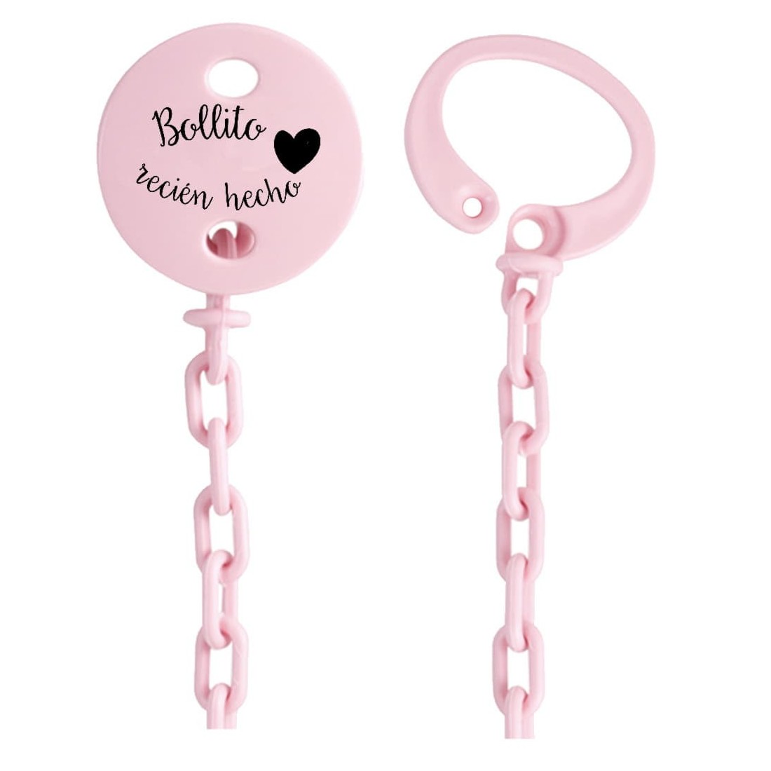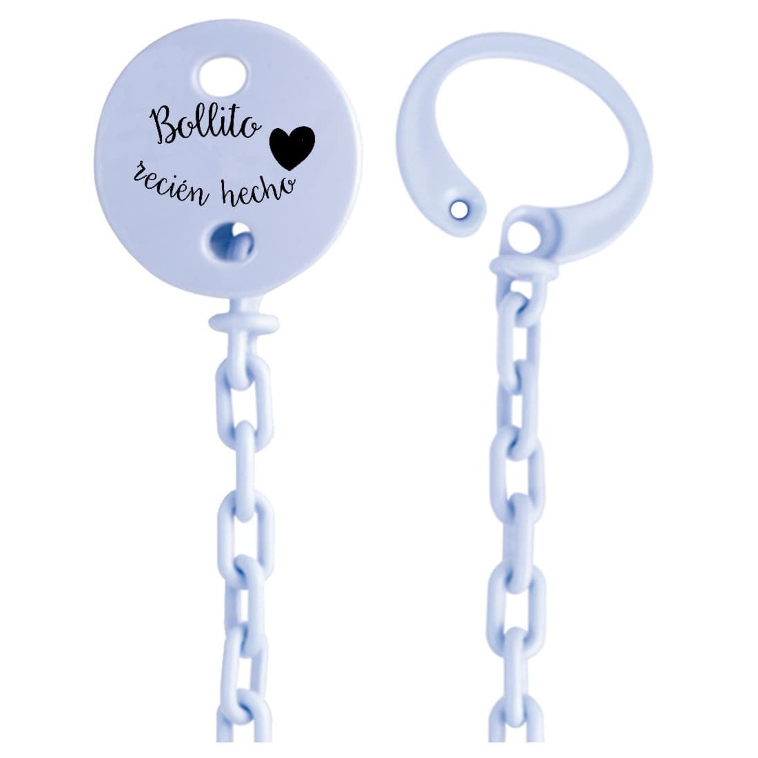 Disponibile in vari colori, con questa catena porta ciuccio il bambino avrà sempre il ciuccio appeso ed eviterà che si perda o cada per terra. Fai un regalo originale con questa simpatica frase o crea la tua combinazione in modo che sia unica attraverso gli altri modelli con personalizzazione.