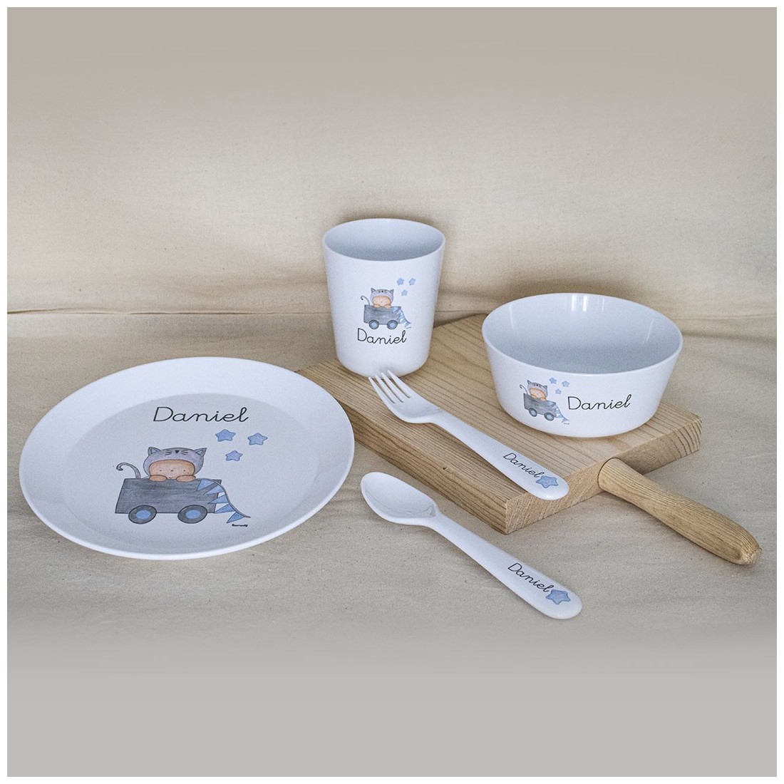 Spazzolino per bambini in bambù personalizzato con un nome, pensato per l'igiene del bambino. Disponibile con setole blu o rosa.
