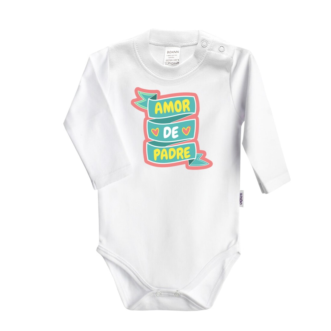 Body personalizzato con la frase "L'amore del padre", realizzato in 100% cotone e disponibile a maniche corte o lunghe.