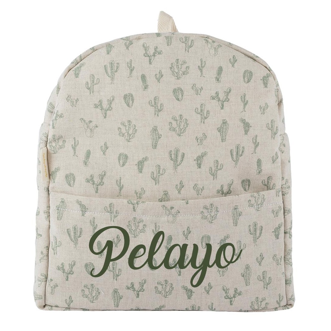 Zaino con manico e dorso personalizzato con il nome che più ti piace e stampa di cactus.
